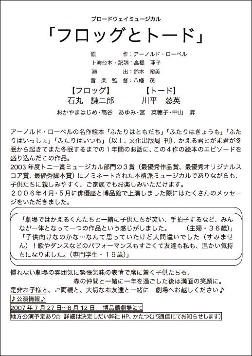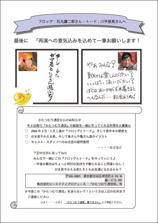 2006年初演後からみなさんにお届けしている、出演者のメッセージやミュージカルが