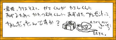 かたつむり君は、いろいろな人へ通信してたいへんですか。[陽広君] |