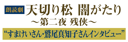 相方は(鷲尾)真知子ちゃんという力のある女優さんで、これもうれしいんだけれど、舞台上では実は、二人が目を見合わせることはないんです。わざと、客席上の中空で目線が出会うぐらいの顔の向きにするよう、演出が施されているのでね。それでいて様々な想い、恋や友情や尊敬までいろんな心を伝え合う場面があるから、すべてを含んで目で見るのでなく、気取って言えば魂、心や気持ちで見ているつもりで芝居をしているんです。そんな気配も、第二夜の今回はより濃く感じて頂けたらうれしいですよね。