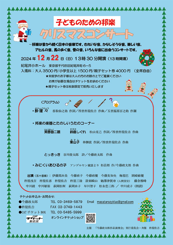 | 公演タイトル | 今藤 政太郎 子どものための邦楽 クリスマスコンサート |