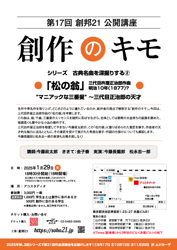 | 公演タイトル | 第17回 創邦21 公開講座「創作のキモ」 |